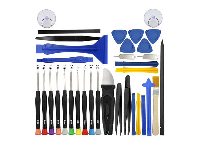 Incluye desarmadores y herramientas de apertura